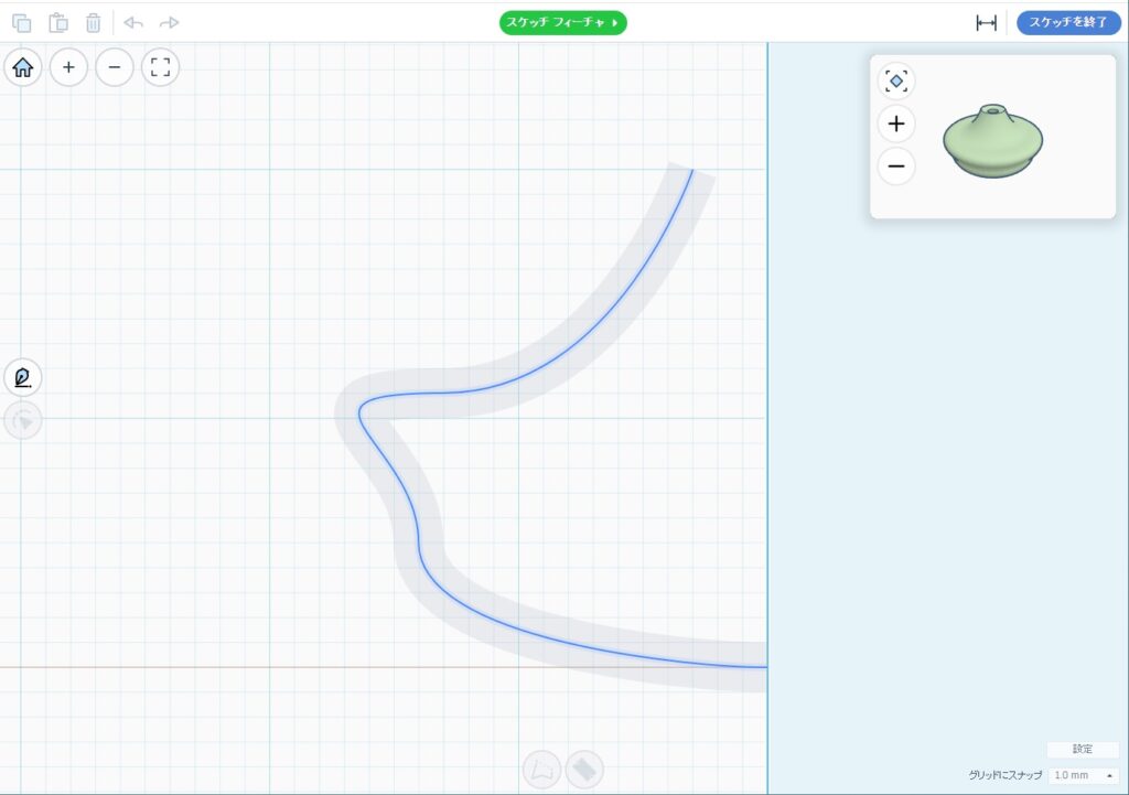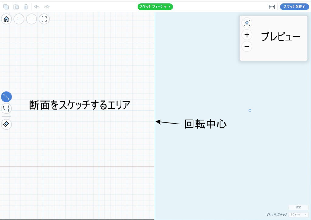- 左半分が回転体の断面をスケッチするエリア